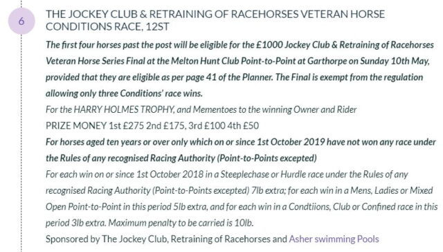 We are pleased to announce that The Jockey Club and Retraining of Racehorses Veterans Series race which had been planned…